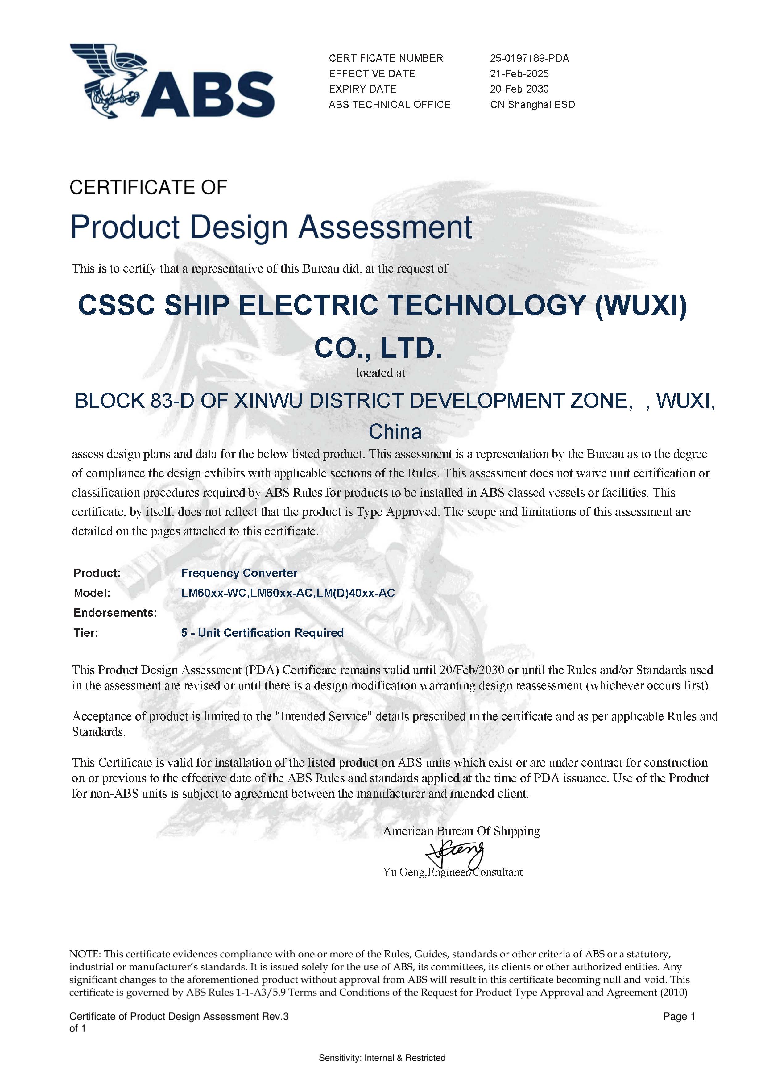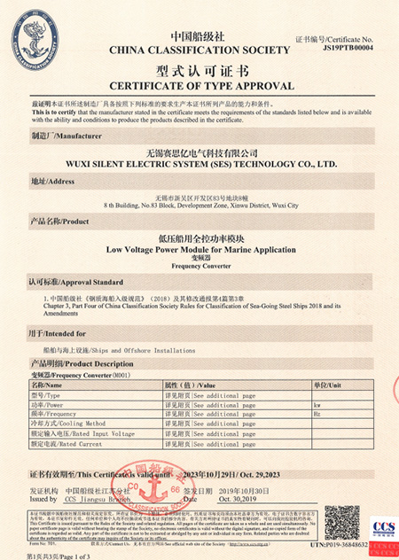 二象限變頻功率模塊型式認(rèn)可(CCS)