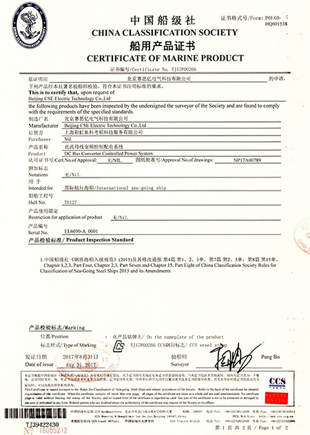 低壓船用核心功率模塊系列產(chǎn)品獲得了中國(guó)船級(jí)社、法國(guó)船級(jí)社、挪威船級(jí)社等主流船級(jí)社的型式認(rèn)可,
