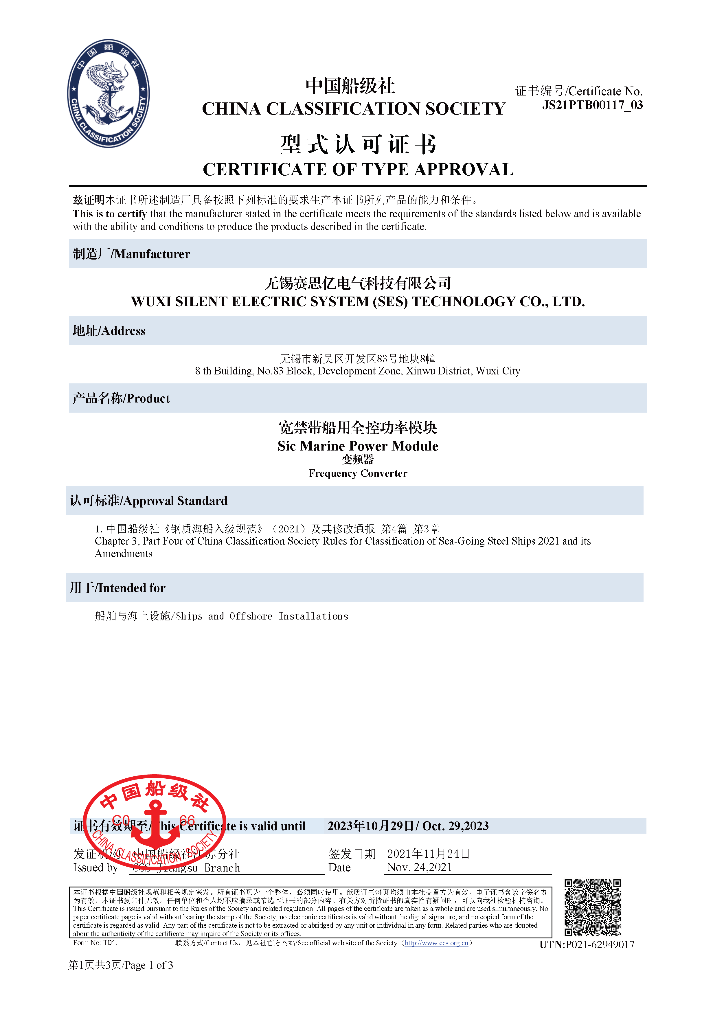 低壓船用全控功率模塊型式認(rèn)可(CCS)