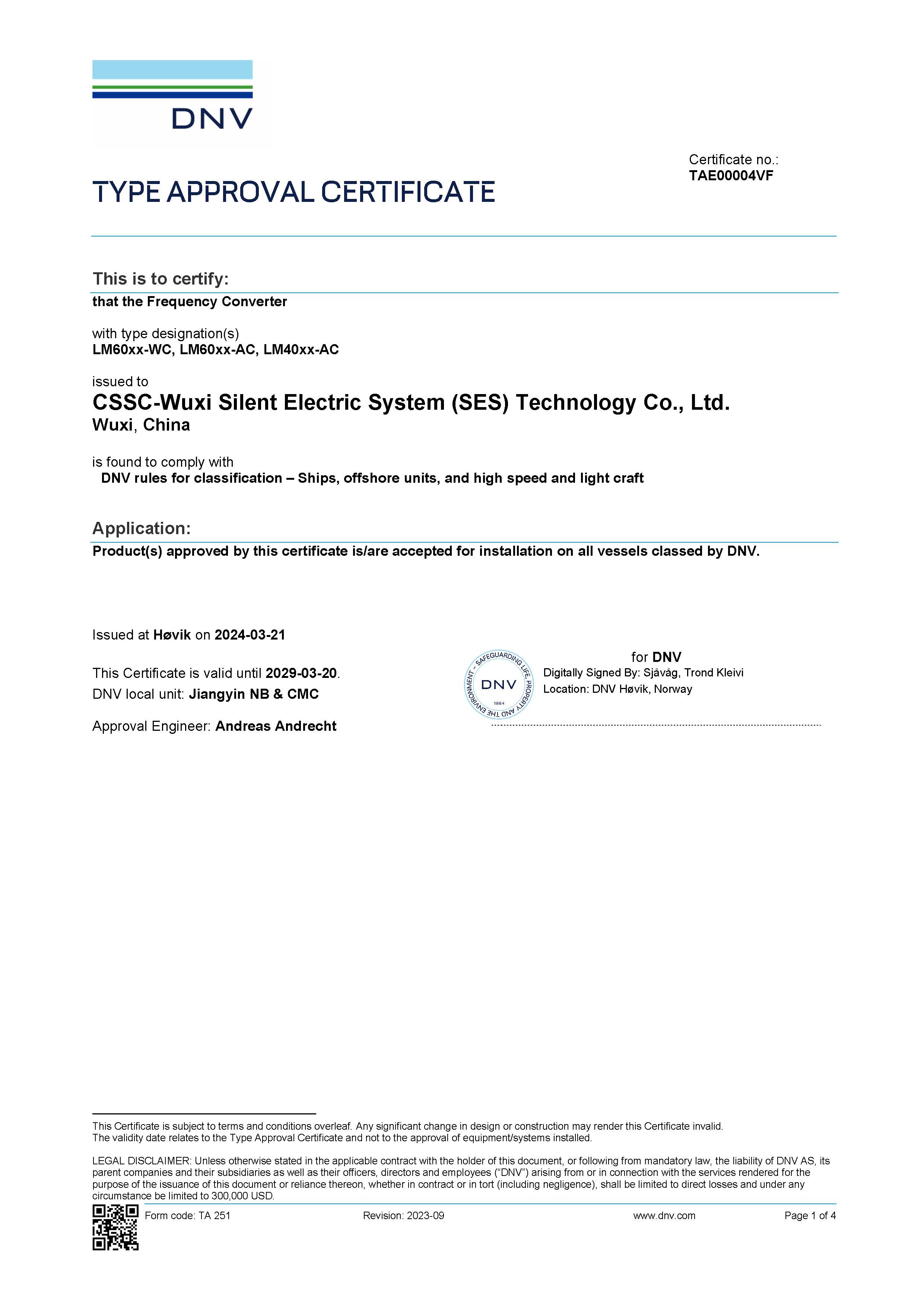 低壓船用全控功率模塊型式認(rèn)可(DNV)